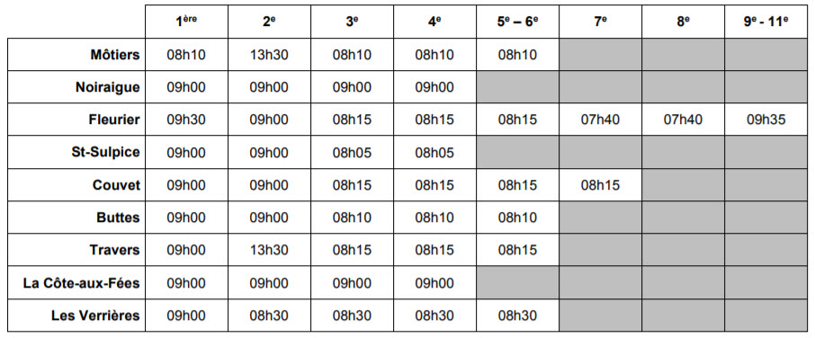L’organisation générale des classes reste similaire à celle des années précédentes, avec quelques aménagements imposés par les variations d’effectifs, rappelant que le collège des Bayards reste fermé en cohérence avec le souhait des parents des élèves concernés de privilégier la scolarisation de leur enfant dans le collège des Verrières. Suite à une baisse non négligeable du nombre d’élèves aussi bien à Boveresse qu’à Môtiers, le collège de Boveresse reste fermé lui aussi et une classe a dû être fermée à Môtiers.