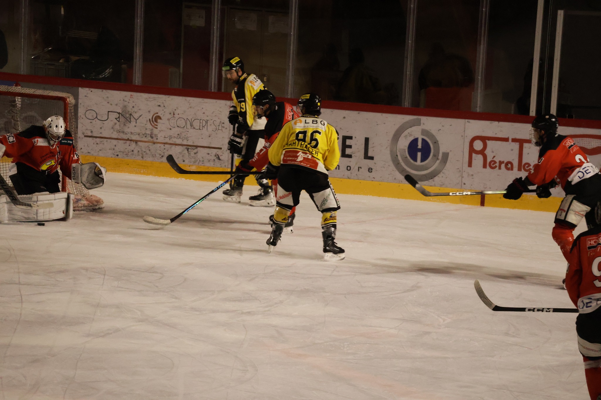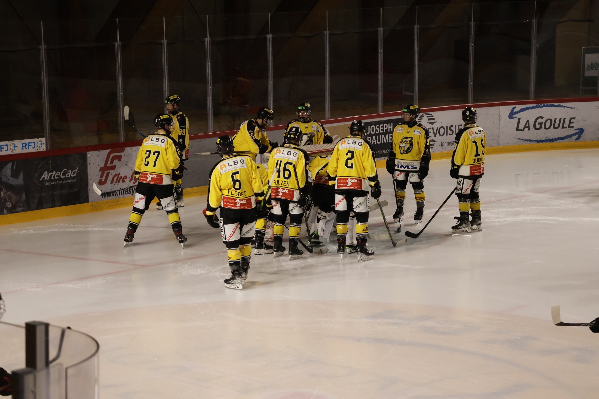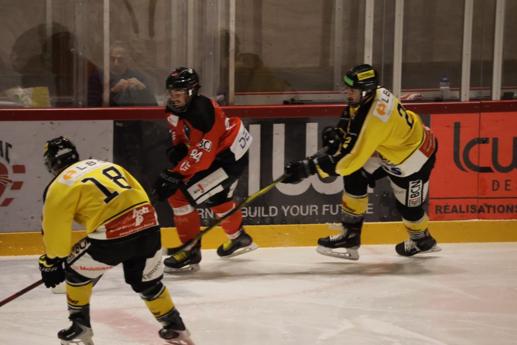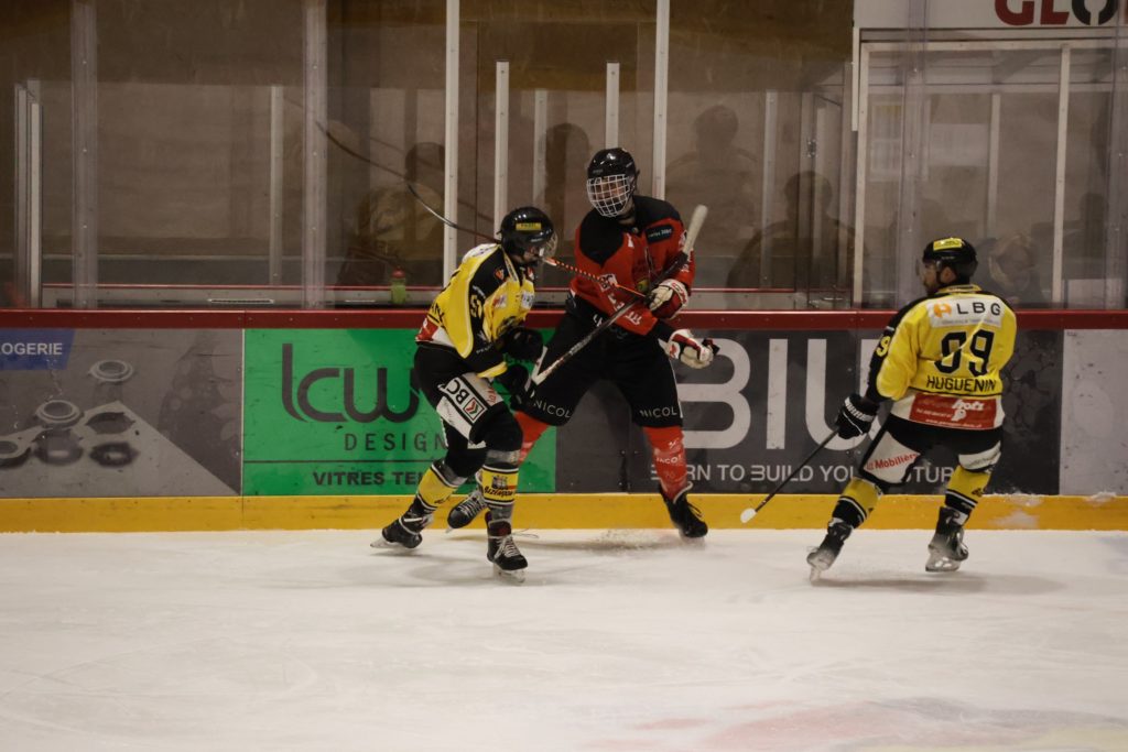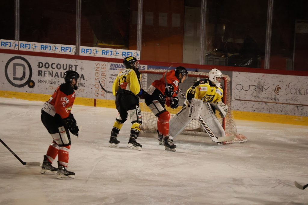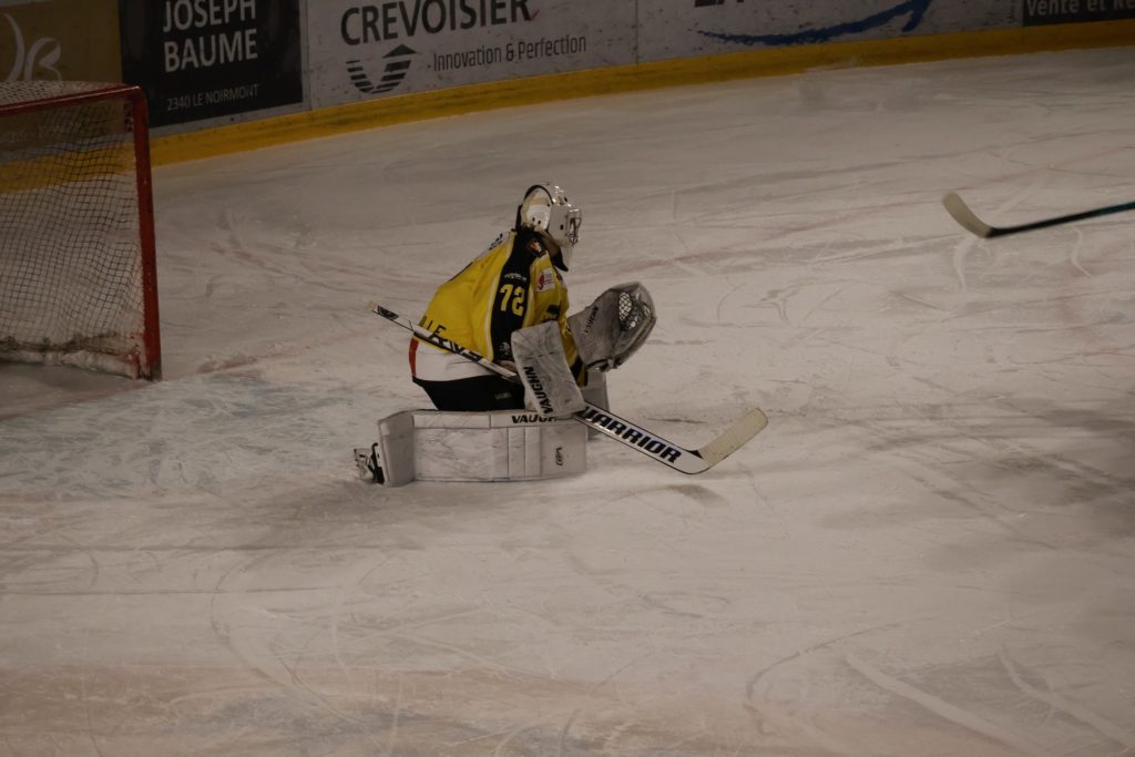 À une minute du terme, Nathan Guichard inscrit le troisième but du HC Franches-Montagnes dans la cage vide, avec l’aide de Lucca Carvalho Beltramelli. Ce but scelle définitivement le sort de la rencontre et confirme la victoire jurassienne.