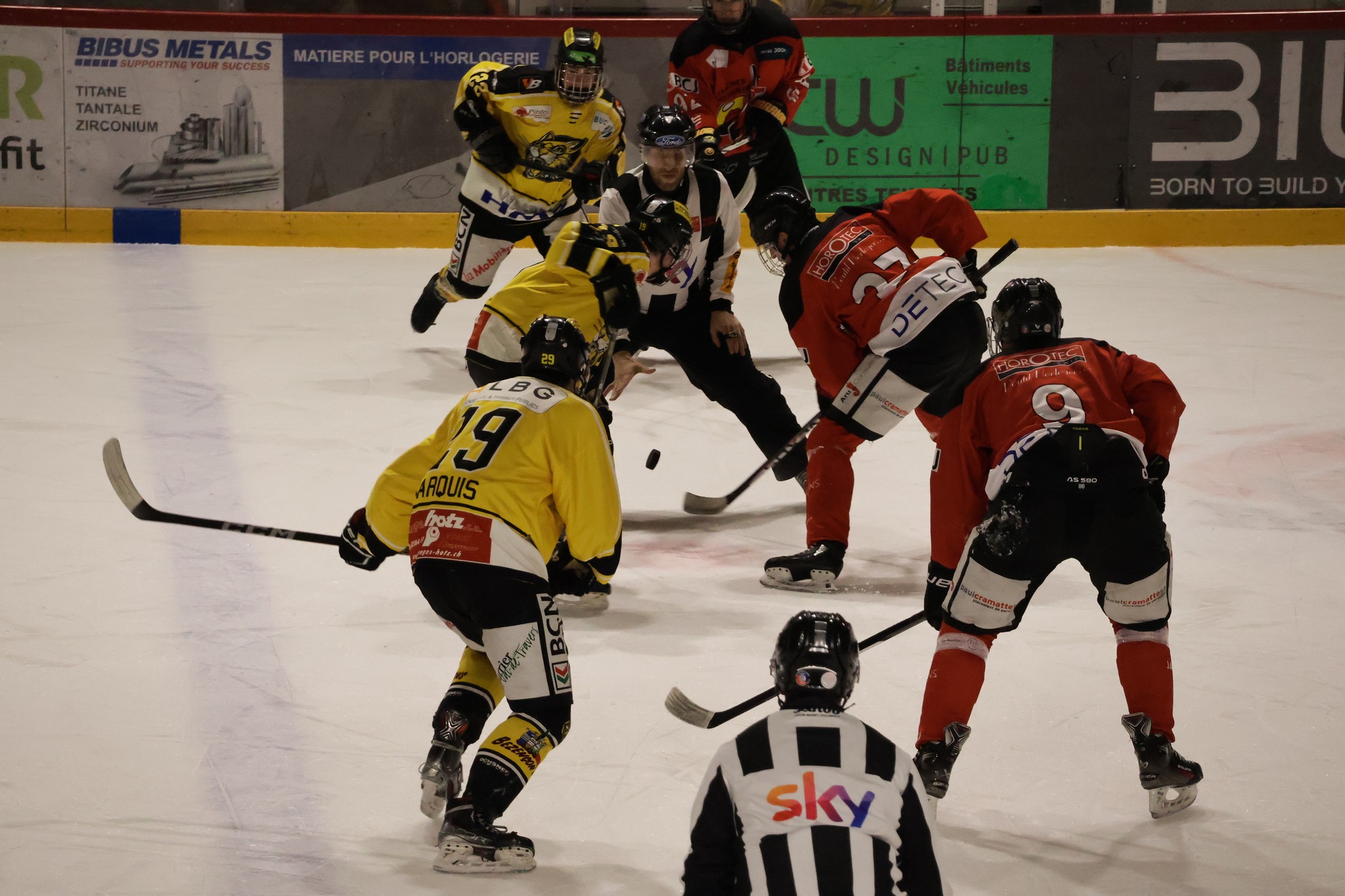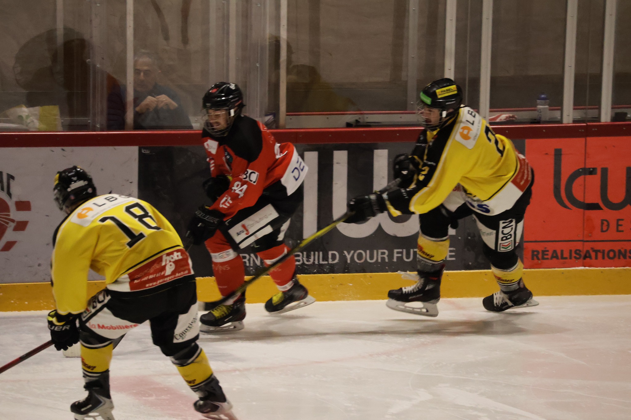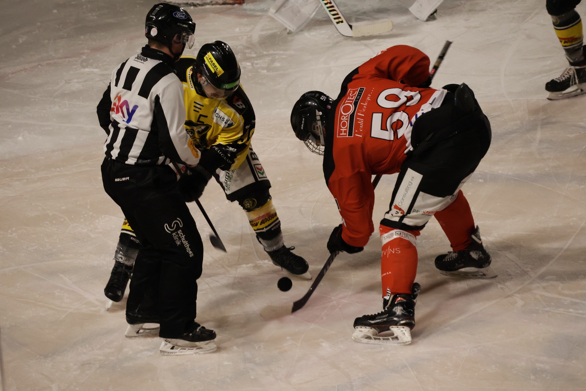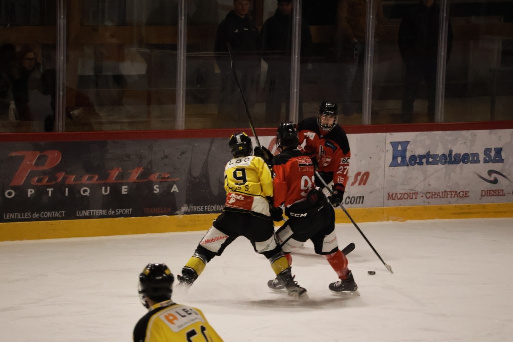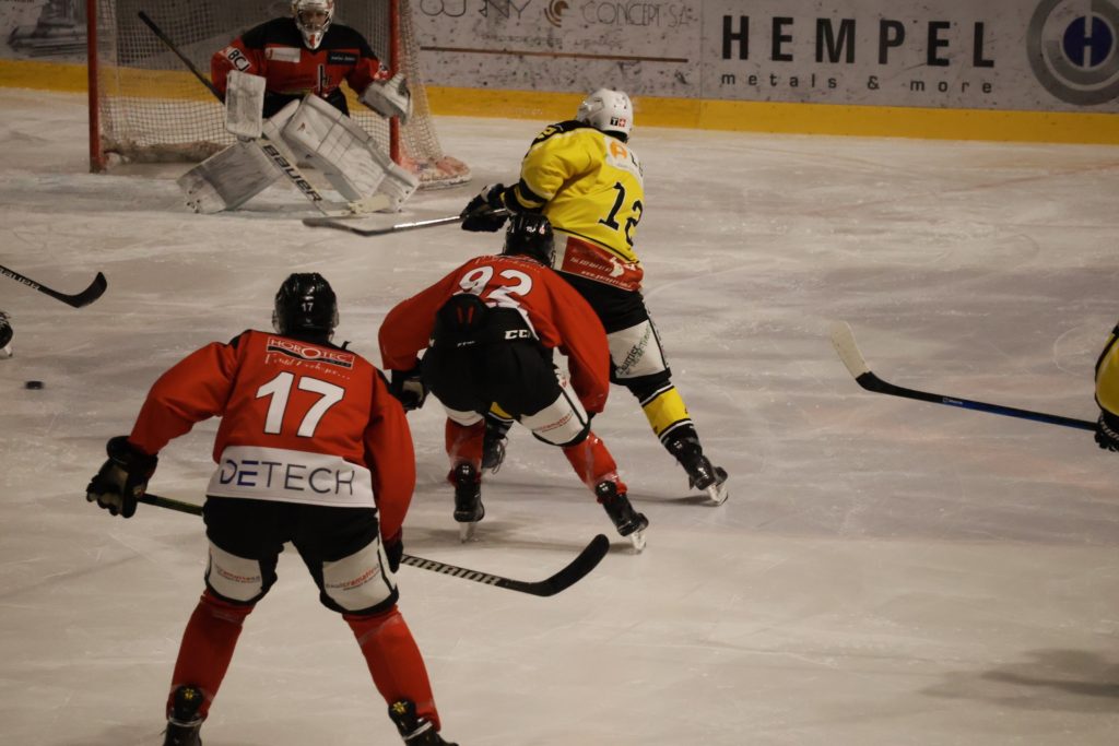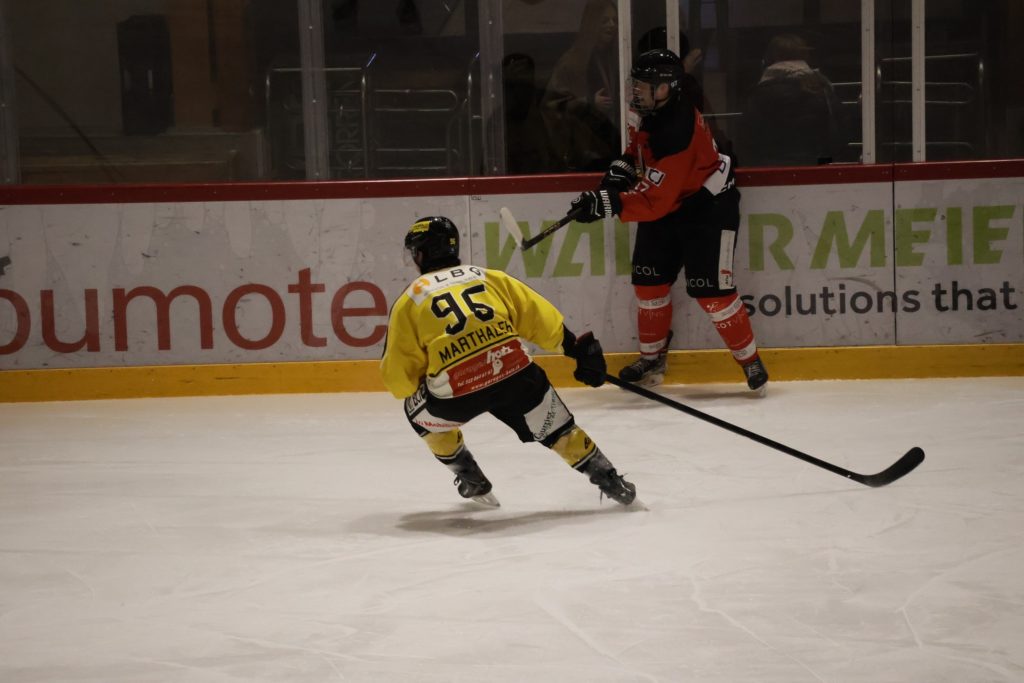 La rencontre débute sur un rythme engagé, avec plusieurs pénalités distribuées de part et d’autre dès les premières minutes. Le tournant du premier tiers intervient à la 7e minute. En situation d’égalité numérique, Leo Eyen ouvre la marque pour le HC Franches-Montagnes, bien servi par Lucca Carvalho Beltramelli et Matt Meusy. Ce but, qui restera le seul du tiers initial, permet aux locaux de prendre un avantage précieux.