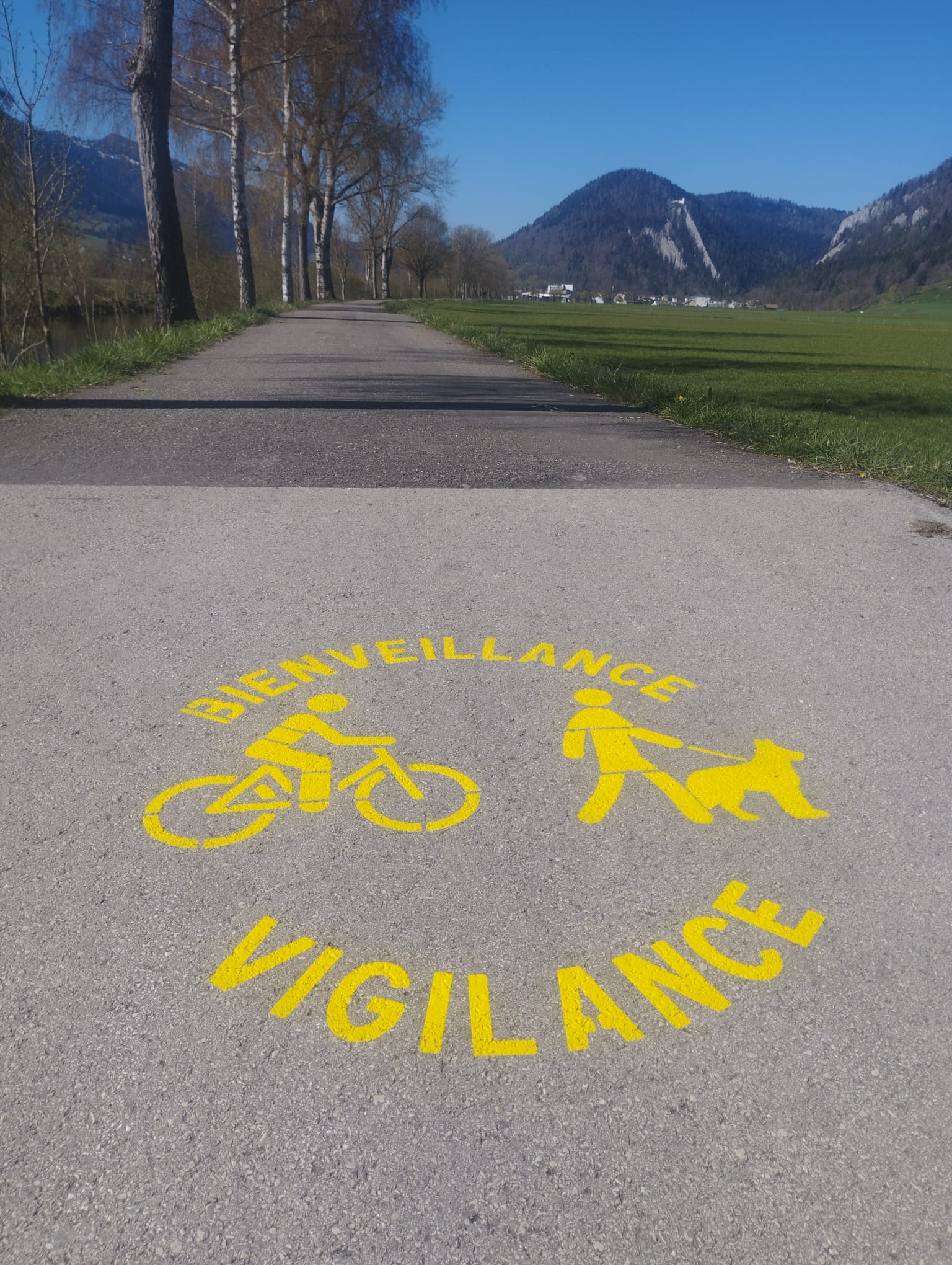 Que ce soit en localité avec des disques de couleur ou en transit entre les villages avec des pictogrammes, la Commune déploie des nouveaux marquages pour renforcer les bonnes habitudes à avoir lorsque plusieurs types d’usagers partagent les mêmes espaces.