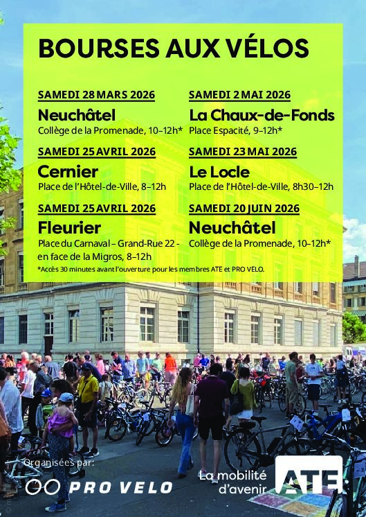Venez vendre ou acheter un vélo. Plus d’infos sur www.ate-ne.ch