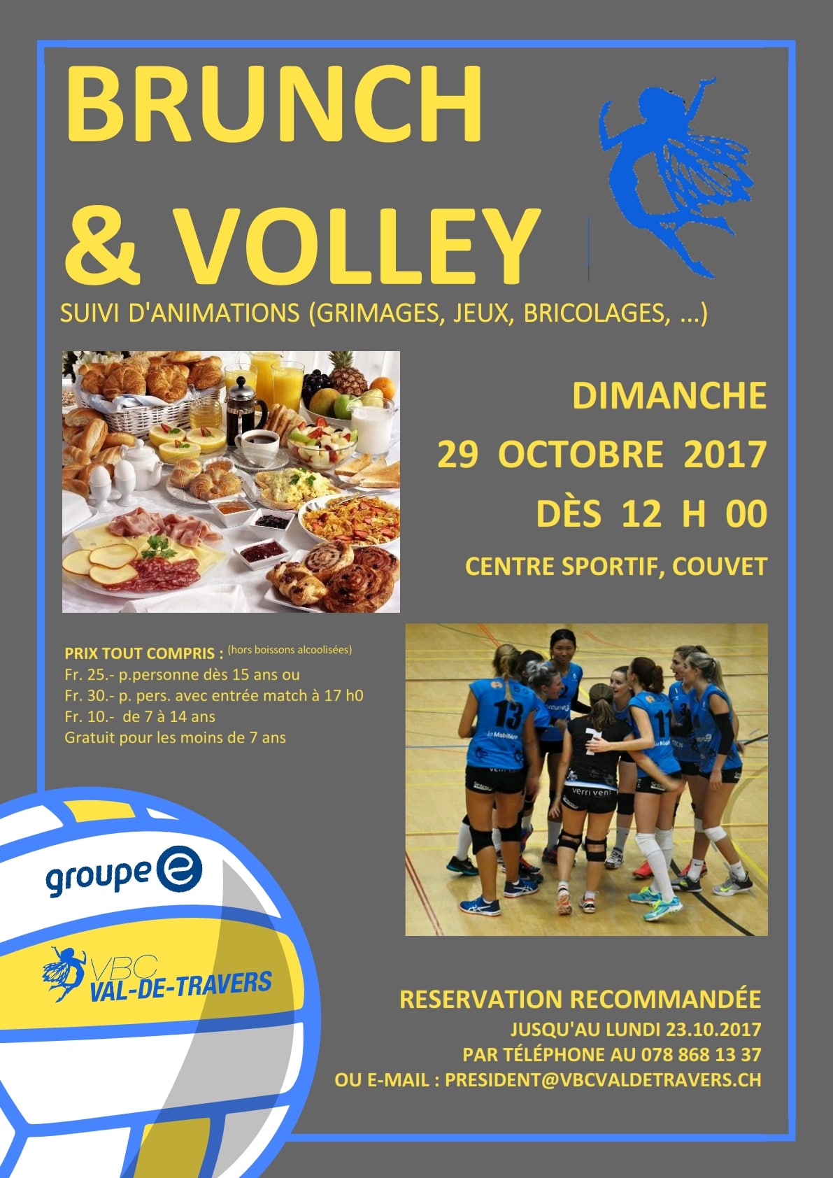 BRUNCH suivi de diverses animations Organisé par le VBC Val-de-Travers Prix 25.- boissons non alcoolisées comprises Enfant 10.-, de 7 à 14 ans (gratuit pour plus jeune) Réservation recommandées (078 868 13