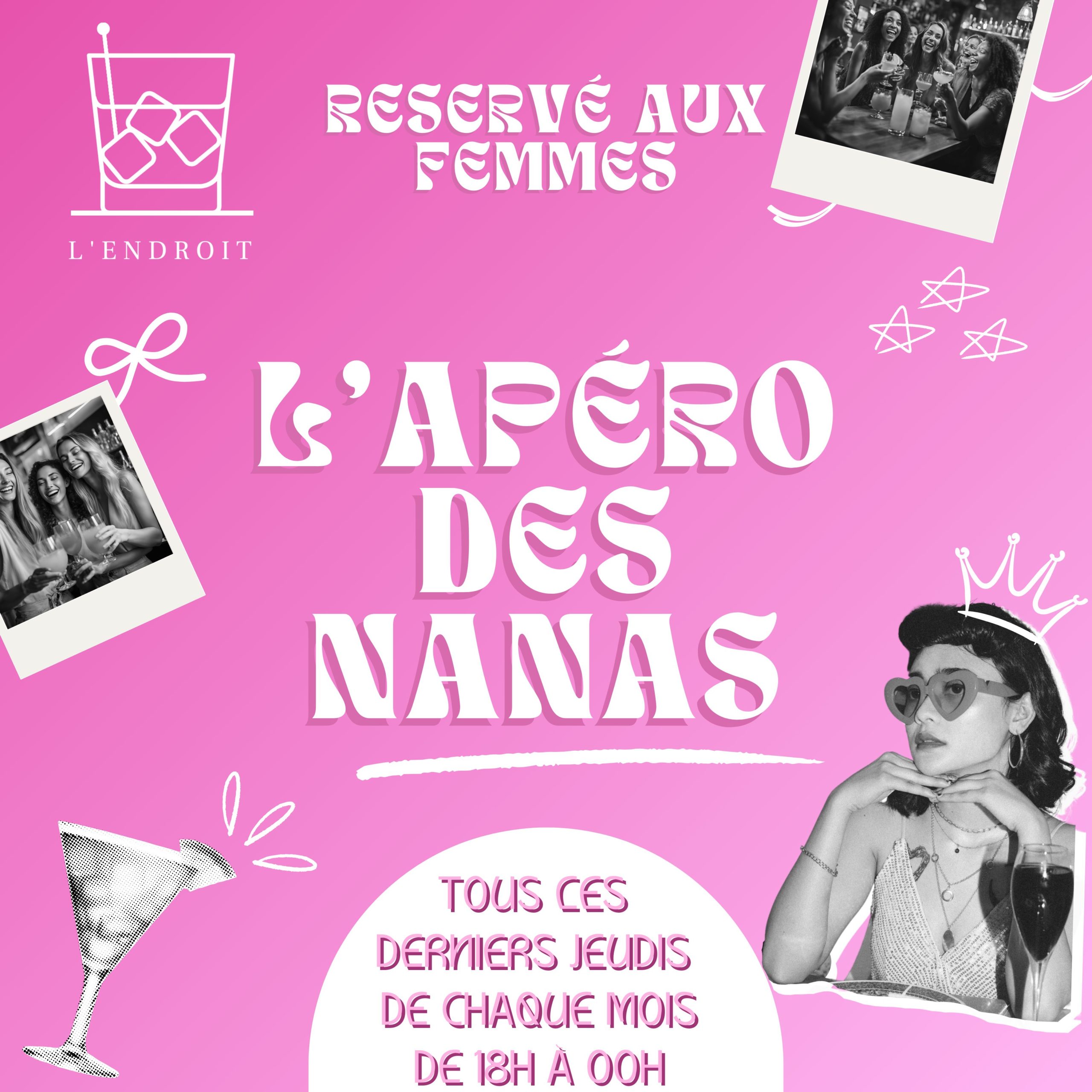Votre soirée préférée, Mesdames 🌸 ✨ L’APÉRO DES NANAS ✨ Préparez-vous pour une soirée inoubliable qui vous sera totalement dédiée ! 💕 🗓️ TOUS LES DERNIERS JEUDIS DU MOIS ⌚️ DE 18H À