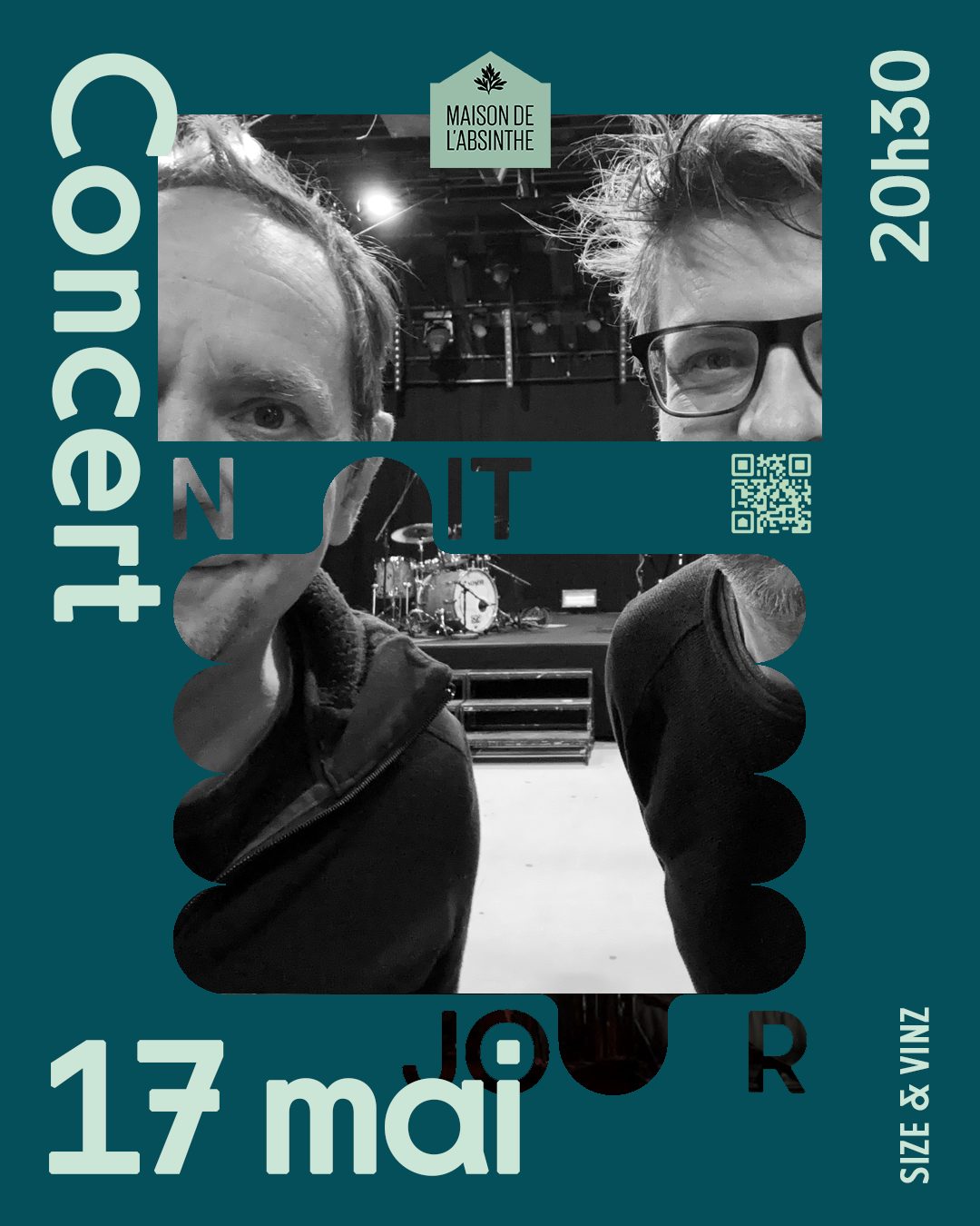 Pour cette édition spéciale, nous accueillons le duo électro-rock SiZe & VinZ (Stéphane Mercier aux machines et Vincent Boillat à la batterie) pour un concert inédit dans notre salle de