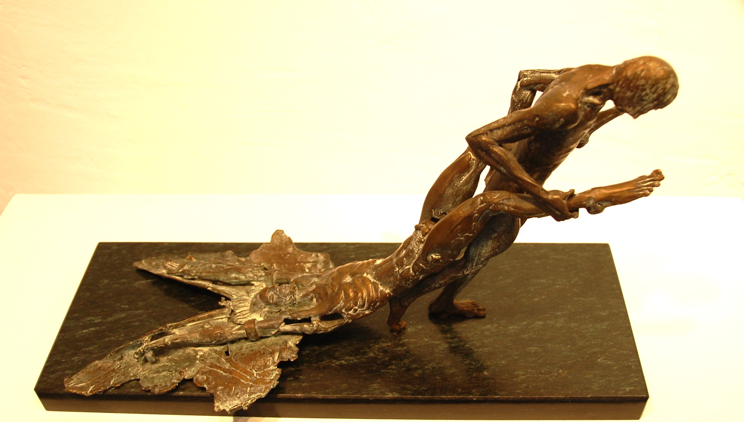 Et pour renforcer le caractère international de notre exposition, nous vous présentons la collection du Jurassien Yves Petermann, glanée tout au long d’une vie professionnelle pour le moins atypique. Licencié en droit, il a d’abord travaillé comme juriste dans l’administration jurassienne à Delémont. Puis il a suivi un parcours vertigineux au sein du Comité International de la Croix-Rouge et du Croissant-Rouge : Israël, Palestine, 15 états nés de la disparition de l’URSS, Afrique de l’Est, Iraq, 18 états d’Europe Centrale et Orientale, Syrie, Genève. Pour notre plus grand bonheur, ce globe-trotteur de l’humanitaire a une grande sensibilité artistique et pendant toute cette vie vouée à travailler pour la paix il s’est constitué une collection d’œuvres d’art à coups de cœur. Aujourd’hui retraité il souhaite que certains des tableaux et sculptures qu’il possède continuent leur chemin vers d’autres lieux, touchant d’autres esprits…