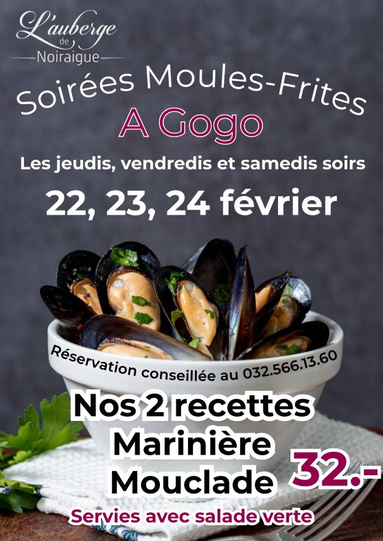 Soirées Moules-Frites à Gogo à l’Auberge de Noiraigue