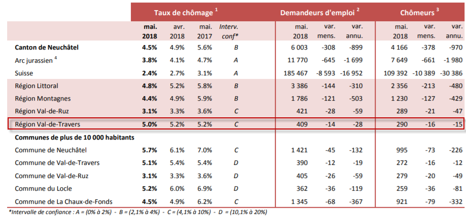Le taux de chômage en recul de 0.2 pt à Val-de-Travers par rapport à la même période l’an dernier