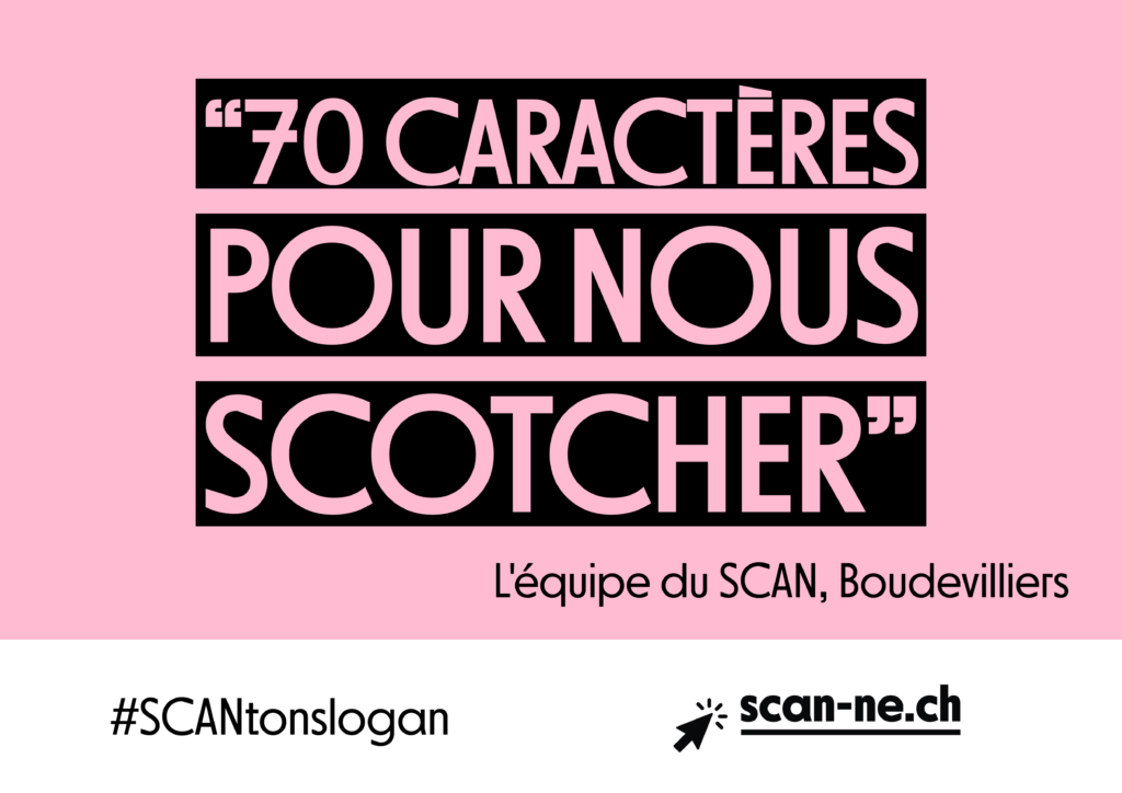 Dès le 15 septembre, les internautes seront invité-e-s à voter pour leurs trois slogans préférés sur scan- ne.ch/scantonslogan. Les cinq slogans ayant obtenus le plus de votes se verront alors être publiés en ligne, affichés dans le canton et leurs créateurs-trices récompensé-e-s par une somme de CHF 500.- chacun-e.