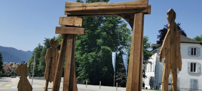 Mais cette exposition était aussi un excellent prétexte pour concrétiser un projet mûri de longue date. Un groupe d’artistes locaux composé de Claude Jeannottat, Alexa Vincze, Albertine Mermet et Roger Grandjean a en effet préparé une sculpture pensée comme un trait d’union entre les villages, qui prendra place sur les quatre ronds-points de la route H10, de Saint-Sulpice à Couvet. Val-de-Travers sera ainsi « Toutes portes ouvertes » avec cinq portiques (un des ronds-points en contiendra deux) pour accueillir et accompagner les passants le long de la route. Une femme enceinte, un enfant avec son doudou, un homme qui danse, au total douze silhouettes graviteront autour de ces portes et animeront les giratoires.