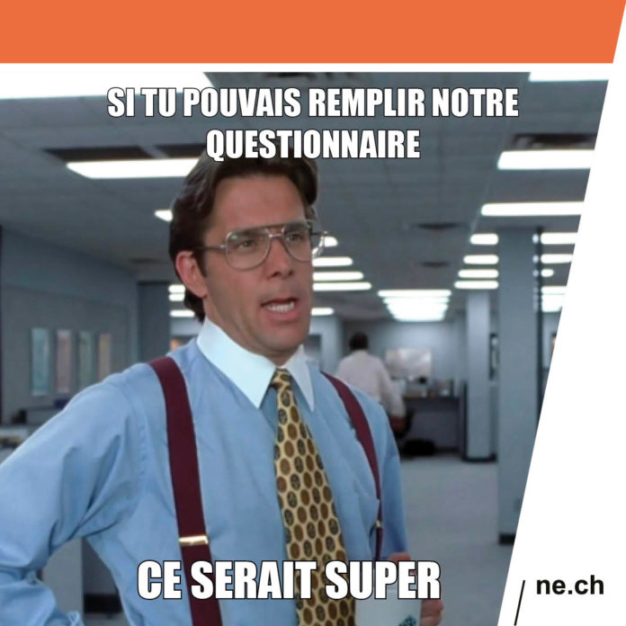 Dès aujourd’hui et jusqu’à début septembre, il suffit d’un clic sur l’adresse www.ne.ch/questionnairejeunesse pour participer à ce questionnaire. Celui-ci constituera la base de données permettant la création de nouvelles mesures en faveur de la jeunesse. Différentes thématiques y sont abordées telles que l’impact de la pandémie sur l’accès aux loisirs, les ressources d’aide à disposition ou encore, les moyens de prise en compte de la parole des jeunes. Ainsi, les jeunes sont encouragé-e-s à donner leurs opinions sur ces différents thèmes. Toutes les observations et remarques des sondé-e-s afin d’améliorer leur quotidien sont les bienvenues. Pour faciliter sa diffusion, le questionnaire est relayé sur le terrain par plusieurs organismes travaillant au plus près des jeunes du canton.