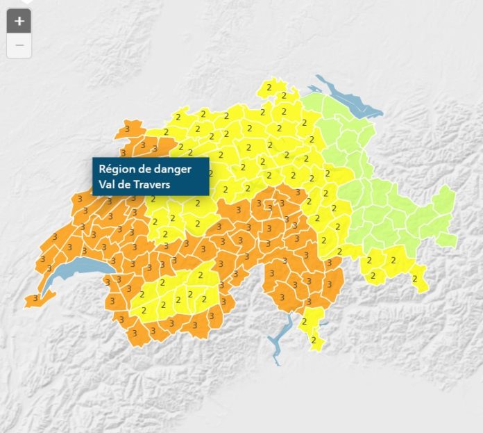 De fortes pluies et une possible activité orageuse sont attendues entre 20h00 ce soir jusqu’à mardi 18h00 sur la région de Val-de-Travers selon Météo Suisse.