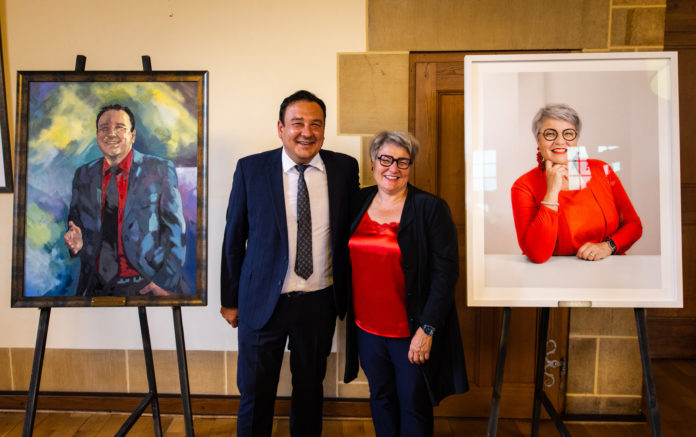 Le portrait de Monika Maire-Hefti, ancienne conseillère d’État et cheffe du Département de l’éducation et de la famille (DEF) de 2013 à 2021, a été réalisé par Eveline Perroud, une photographe de La Chaux-de-Fonds. Quant au portrait de Jean-Nathanaël Karakash, ancien conseiller d’État et chef du Département de l’économie et de l’action sociale (DEAS) de 2013 à 2021, il est l’œuvre d’Albertine Mermet, une artiste-peintre du Val-de-Travers. Ces deux œuvres ont été dévoilées en fin de journée lundi 5 juillet 2021 au Château de Neuchâtel à l’occasion d’une traditionnelle cérémonie officielle. Celle-ci s’est déroulée en présence des anciens collègues du Conseil d’État, de leurs familles respectives et de l’actuel Conseil d’État in corpore.