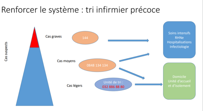 COVID-19 – Tri infirmier précoce – Image source: https://www.ne.ch/medias/Documents/20/03/COVID-19%20Dispositif%20sanitaire%20(13%20mars).pdf