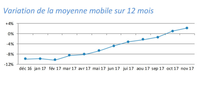 sa plus forte croissance des 30 derniers mois. Le rythme soutenu du Royaume-Uni (-1,9%) s’est nettement essoufflé depuis le mois de septembre, indiquant qu’un palier semble avoir été atteint. Le Japon (+22,5%) a connu un deuxième mois de forte progression, reflétant sans doute l’augmentation de la demande liée au tourisme, notamment chinois. L’Europe a aussi été témoin d’évolutions contrastées, avec l’Italie (+5,0%), l’Allemagne (-0,2%), la France (+19,0%) ou l’Espagne (-6,5%).