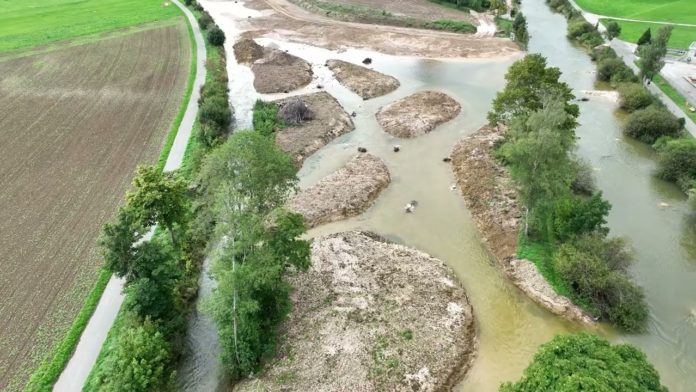 En 2022 et 2023, le Canton de Neuchâtel et la Commune de Val-de-Travers ont conjointement réalisé deux projets de réaménagement de cours d’eau à Môtiers. Grâce à ces travaux, la zone industrielle de Môtiers est maintenant protégée contre les inondations de l’Areuse. En parallèle, les cours d’eau ont été revitalisés, à la jonction entre l’Areuse et la Vieille-Areuse ainsi qu’à l’embouchure du Bied de Môtiers. Ce printemps, les aménagements ont été finalisés par la pose d’une passerelle sur le Bied de Môtiers, qui permet au public d’observer le secteur inondable situé à l’embouchure dudit cours d’eau.