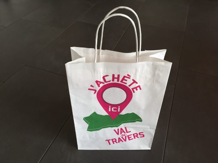 Visible depuis fin 2015 sur les vitrines de dizaines de commerçants du Val-de-Travers, le logo « J’achète ici » s’affiche désormais au bras des clients ! Cela par le biais de sacs en papier offerts en trois formats différents, réalisés bien évidemment au Vallon.