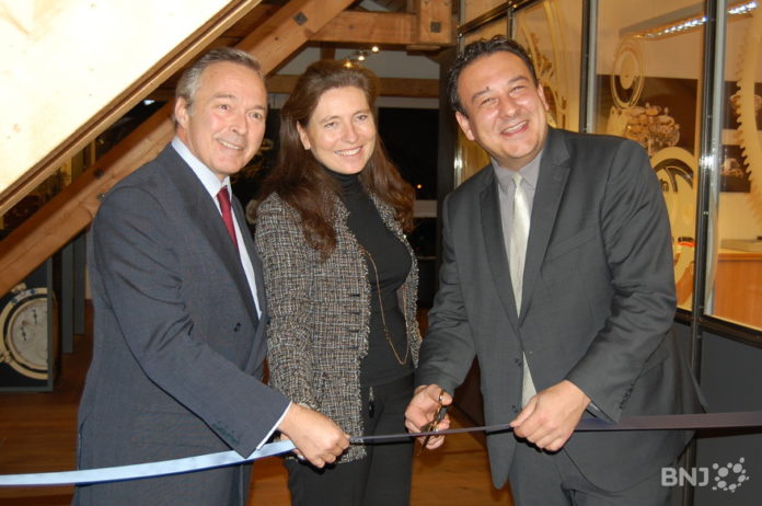 Le co-président de Chopard Karl-Friedrich Scheufele, son épouse Christine et le conseiller d’Etat neuchâtelois Jean-Nat Karakash coupent le ruban.