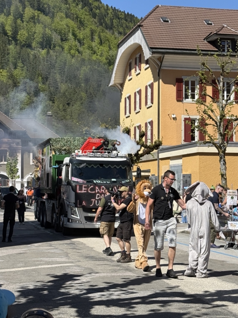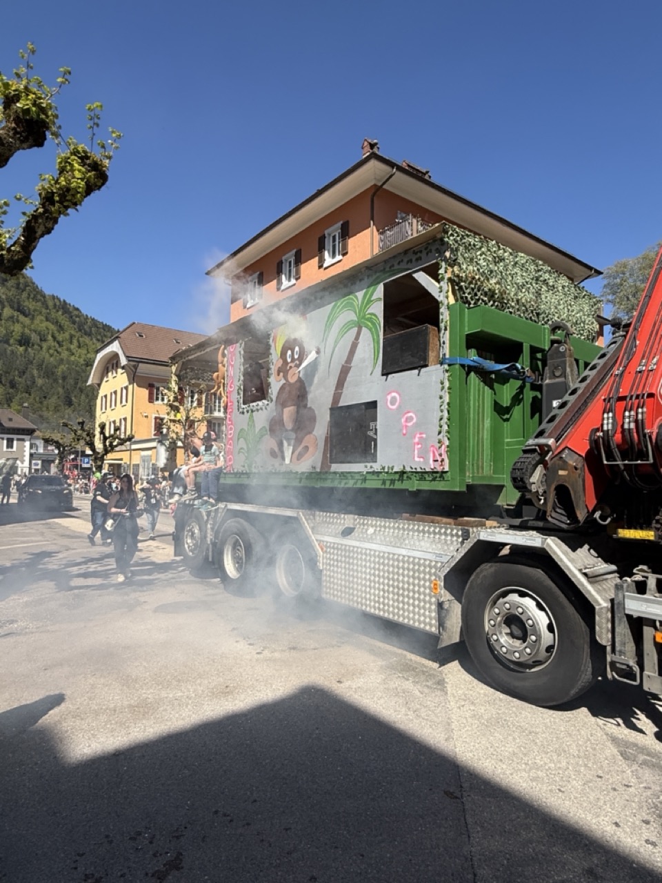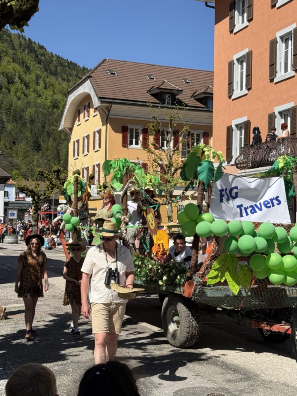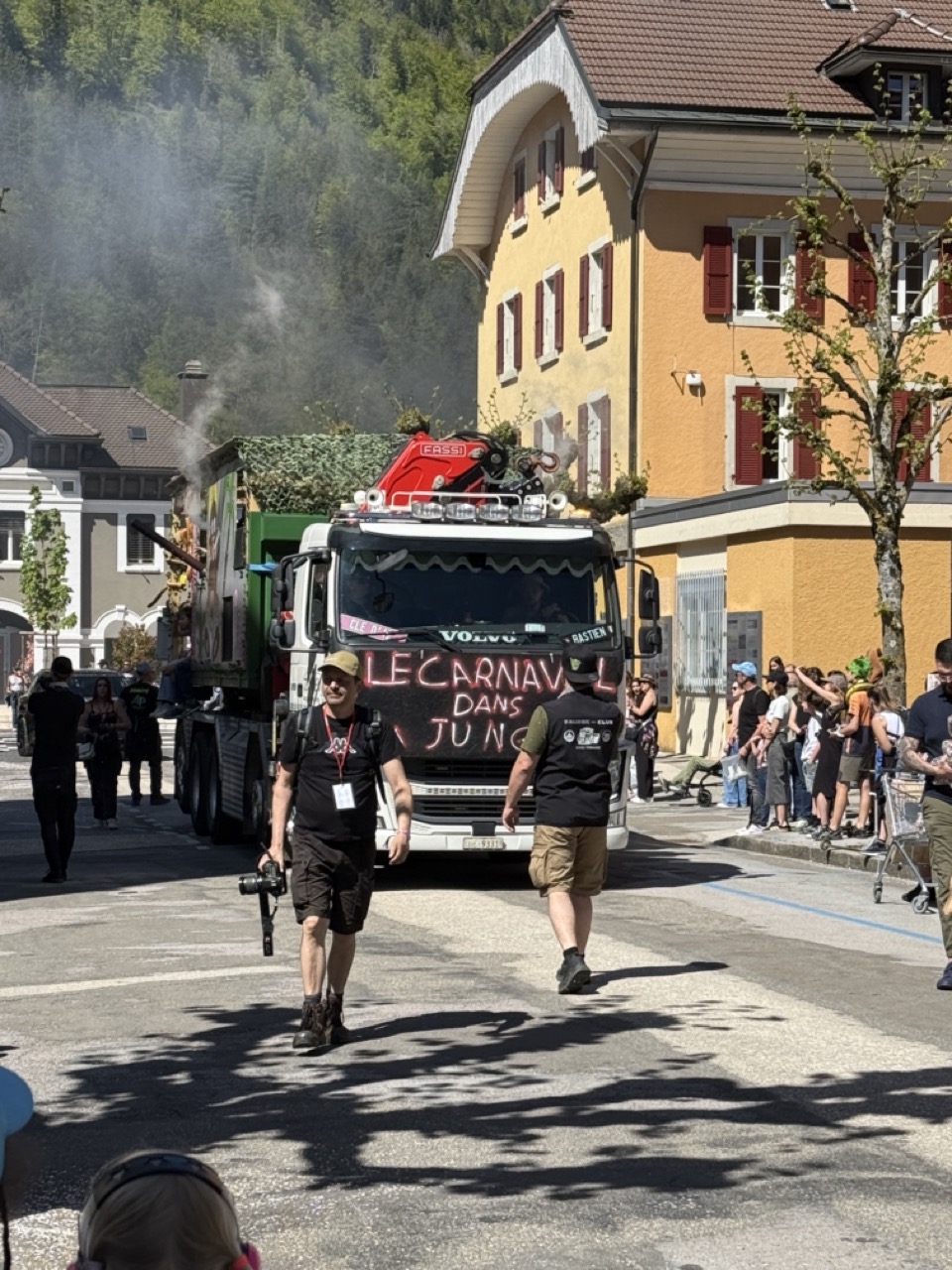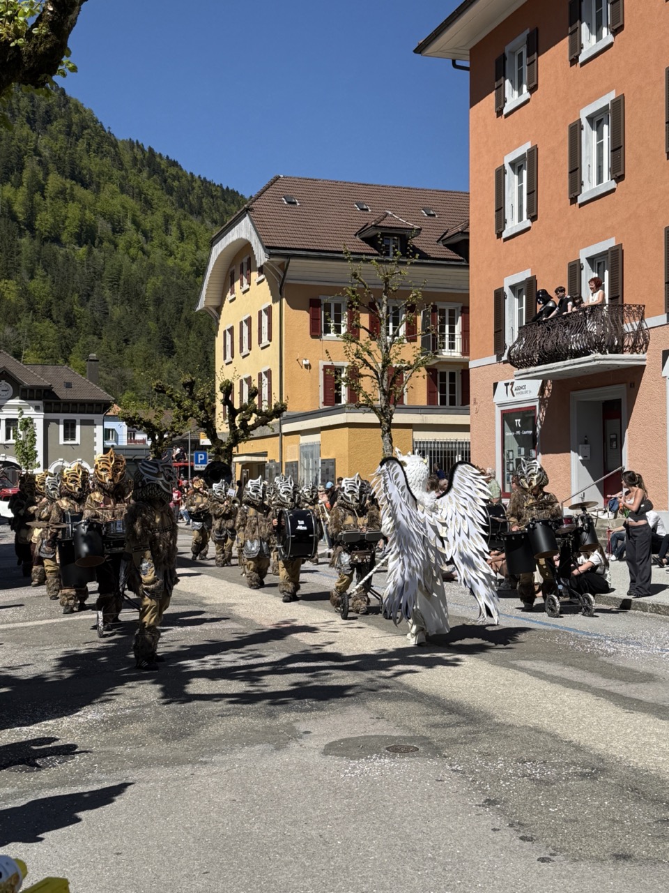 Point d’orgue de la manifestation, le grand cortège du dimanche a rassemblé chars, guggenmusiks et groupes déguisés dans une атмосphère joyeuse et conviviale au cœur du Val-de-Travers.